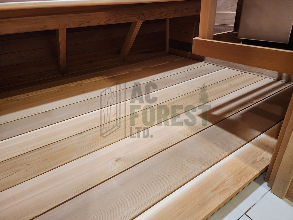 We manufacture cedar paneling and build interior sauna rooms with options like electric heater, layout of benches, doors (with window or full glass door). Custom sizes available. ​Manufactured from locally sourced clear grade Western Red Cedar T&G paneling, kiln dried.